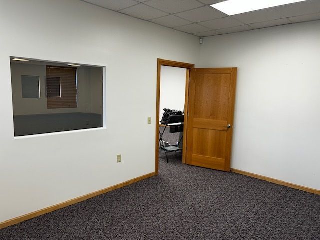 A very unique unit that offers 1920 feet. The space contains one large office, about 10x12 and a large work area off of the front door. In addition, there is a large storeage area with an overhead door with potential for driving into. Large bathroom and utility room. There is also a rear entrance with a walk-in door for deliveries. Just recently painted and carpeted.